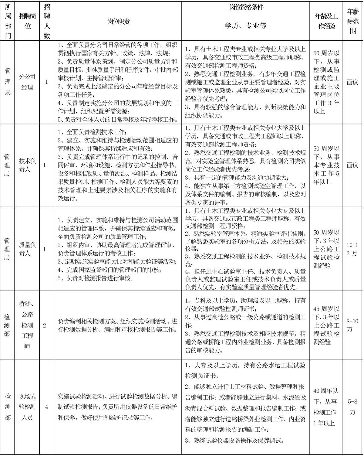 3.熱愛交通檢測行業(yè),勤勉盡責(zé),誠實守信,無不良記錄;