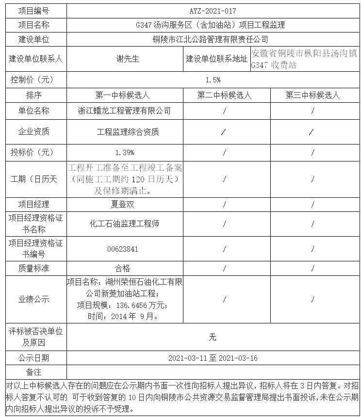 建設(shè)單位聯(lián)系地址:安徽省銅陵市樅陽(yáng)縣湯溝鎮(zhèn)G347收費(fèi)站