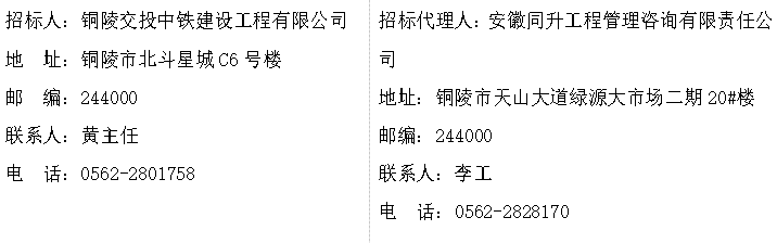 本招標(biāo)公告同時在銅陵市綜合交通投資集團(tuán)有限公司網(wǎng)、安徽同升工程管理咨詢有限責(zé)任公司網(wǎng)發(fā)布。