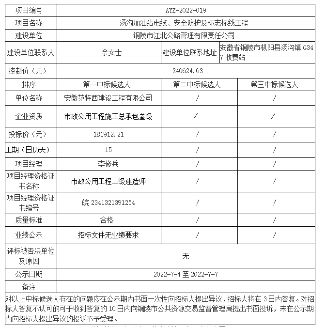 建設(shè)單位聯(lián)系地址:安徽省銅陵市樅陽縣湯溝鎮(zhèn)G347收費(fèi)站
