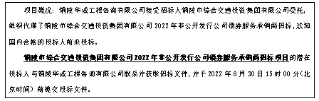 2.項目名稱:銅陵市綜合交通投資集團有限公司2022年非公開發(fā)行公司債券服務(wù)承銷商招標項目