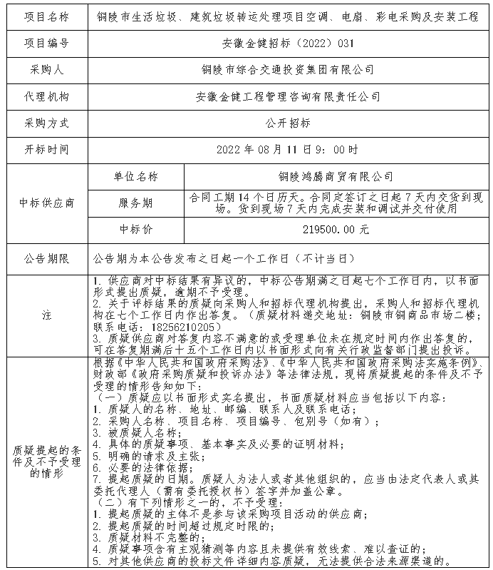?采購(gòu)人:銅陵市綜合交通投資集團(tuán)有限公司