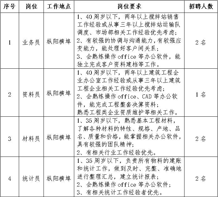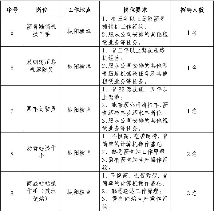 銅陵市綜交新型路面材料有限責任公司人員招聘明細表