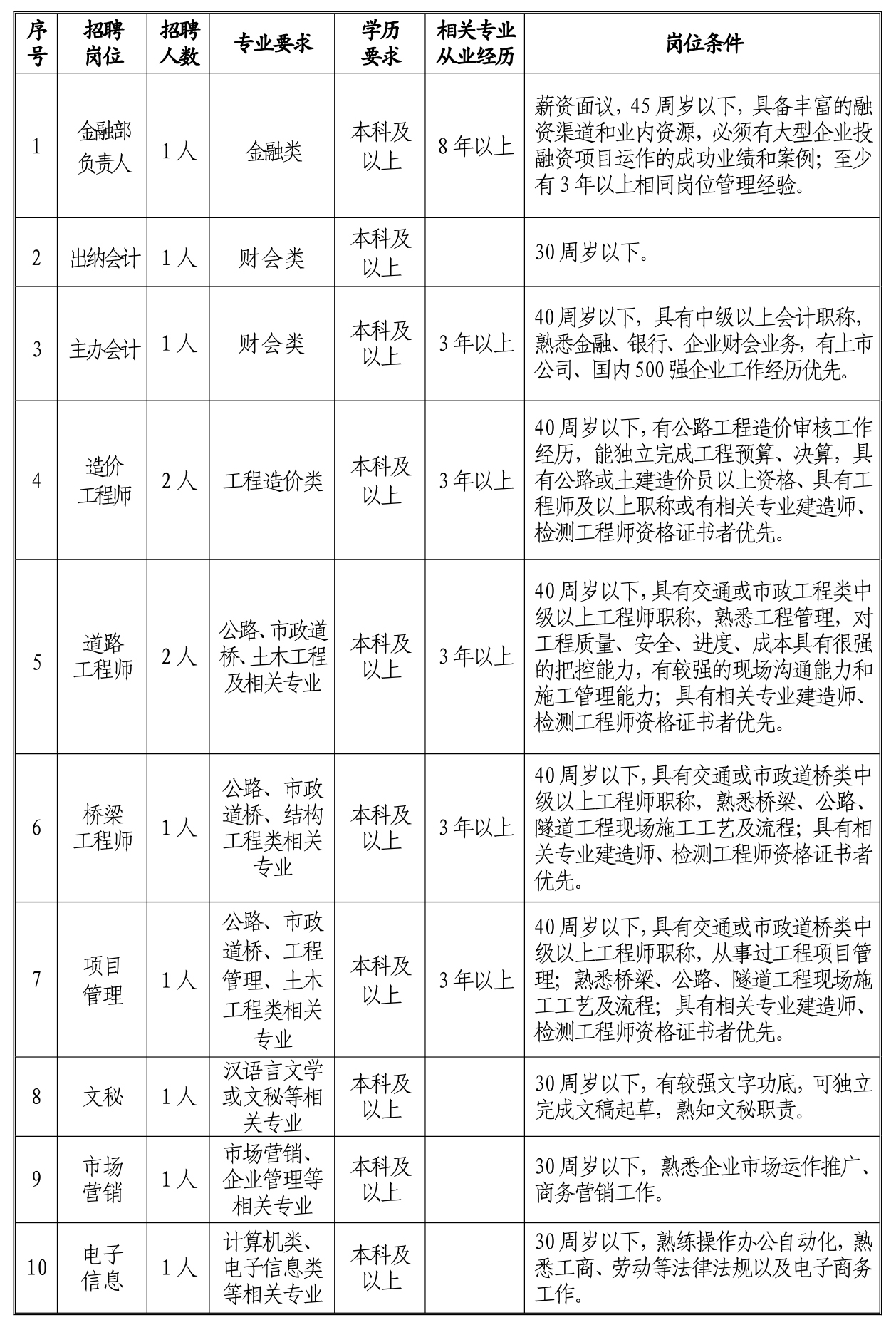 銅陵市交通投資有限責(zé)任公司因經(jīng)營發(fā)展需要,現(xiàn)面向社會公開招聘12名工作人員,現(xiàn)將具體事項(xiàng)公告如下: