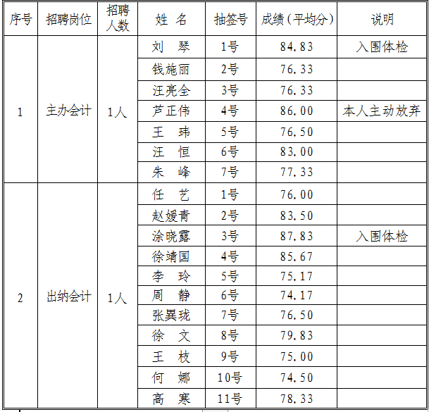 現(xiàn)將交投集團公司主辦會計、出納會計崗位招聘體檢入圍人員名單公示如下: