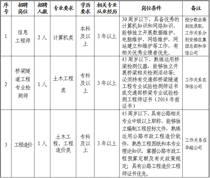 2.報(bào)名方式:采取網(wǎng)上投遞簡(jiǎn)歷方式報(bào)名,凡有意應(yīng)聘上述招聘崗位且符合崗位要求的人員,請(qǐng)將報(bào)名表、個(gè)人簡(jiǎn)歷、有關(guān)證件掃描件(學(xué)歷證書、職稱證書、職(執(zhí))業(yè)證書、身份證等)發(fā)至報(bào)名郵箱:4060356@qq.com,或郵寄地址:銅陵市北京北斗星城3-C6C7棟1102號(hào)(銅陵市綜合交通投資集團(tuán)有限公司收)。