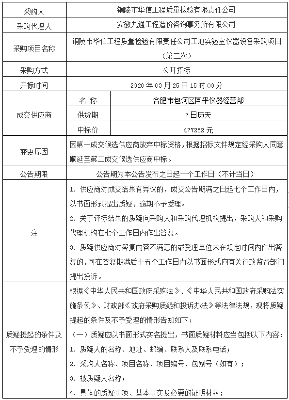 采購(gòu)人:銅陵市華信工程質(zhì)量檢驗(yàn)有限責(zé)任公司