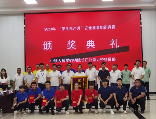 6月30日,G3銅陵長江公鐵大橋開展“安全生產(chǎn)月”安全質(zhì)量知識競賽活動。銅陵長江公鐵大橋投資有限公司執(zhí)行董事、總經(jīng)理湯世才,副總經(jīng)理李春雨出席活動,并與全過程項目管理辦公室負(fù)責(zé)人潘波,鐵科院監(jiān)理總監(jiān)王勛文,合肥工大監(jiān)理副總監(jiān)王祥,項目經(jīng)理劉幸福,總工程師姚森,安全總監(jiān)周啟輝組成裁判組。
